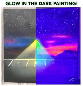 “Stay True” 24″x36″ Acrylic/Foil/Airbrush/GITD“Everything and Nothing” 16″ x 20″ Acrylic/Airbrush/Toy Shoes on canvas“Pumped Up Kicks” 16″ x 20″ Acrylic/Airbrush/Resin/Toy Shoes on canvas“I Scream” 30″ x 40″ Acrylic/Airbrush on canvas“I wanna dance with you” 24×30 Unframed Acrylic/Airbrush on canvas (wraparound paint)“Skulls” 24×36 Acrylic on canvas“Buffalo Soldier” 30×40 Framed Acrylic/Airbrush on canvas“…and out come the wolves” 20×20 Acrylic/GITD resin on canvas“Punks Not Dead” – 20×20 Acrylic with rodent spike border“Ghostfire” 24×36 Acrylic/Airbrush on canvas“Somebody’s Watching Me” 18×24 Unframed Acrylic/Spraypaint on canvas “Grinding Halt” 24×30 Acrylic/Spraypaint on canvas“Stay The Course” 16×20 Unframed Acrylic on canvas“The Passenger” 20×20 Acrylic, airbrush, spray paint and epoxy resin – GLOW IN THE DARK
